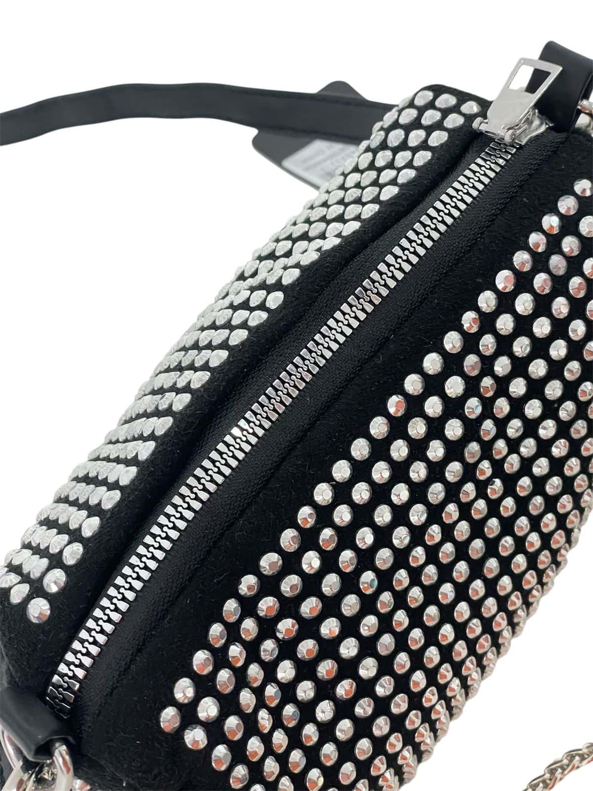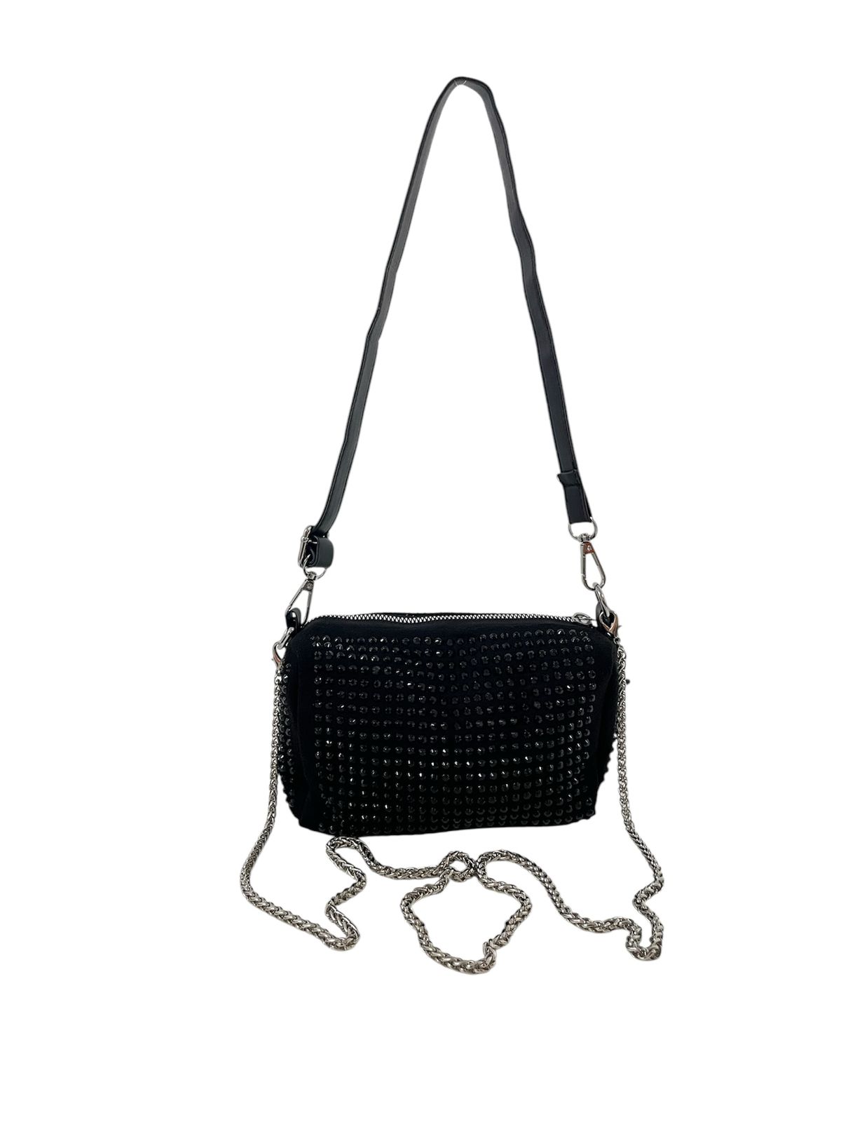 alça dupla: corrente metálica e de couro sintético ajustável;