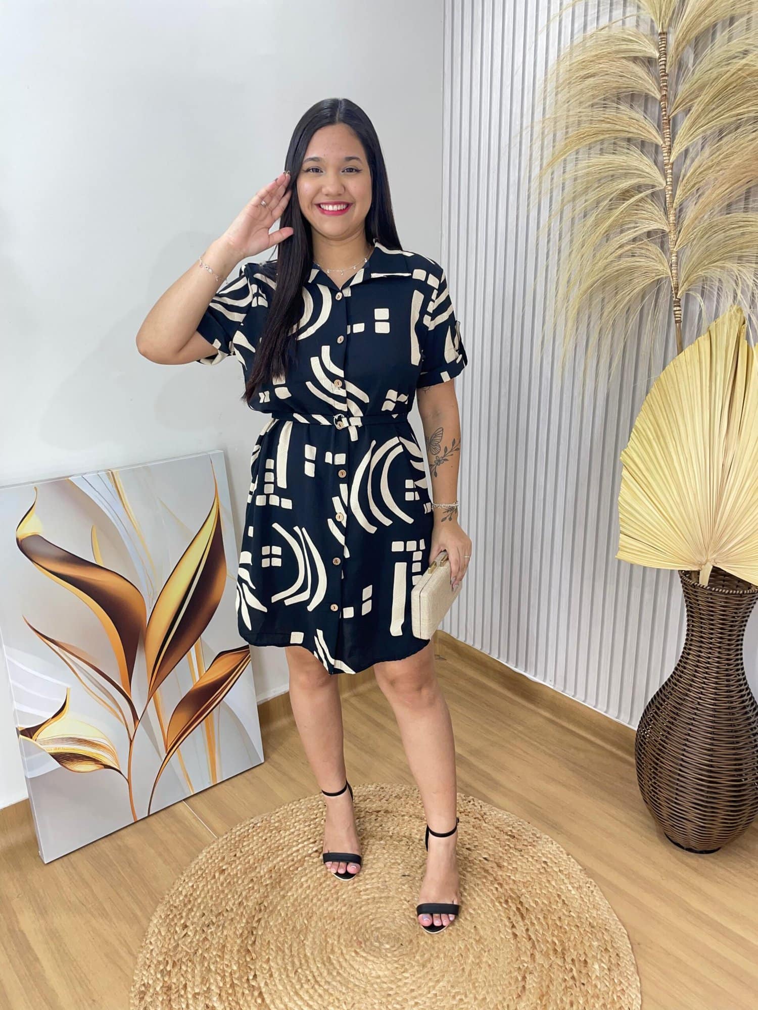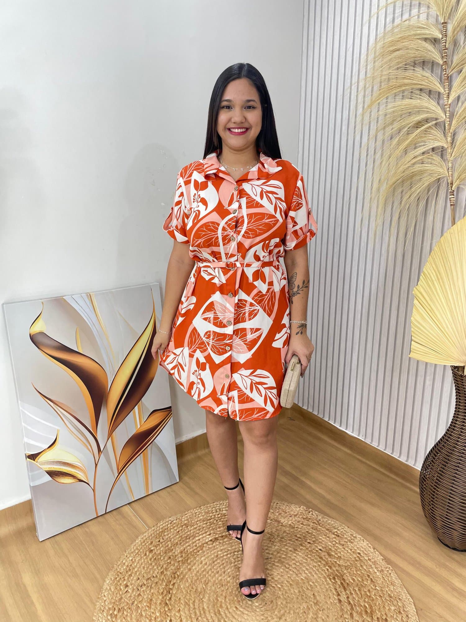 - possui cinto (mesmo tecido);