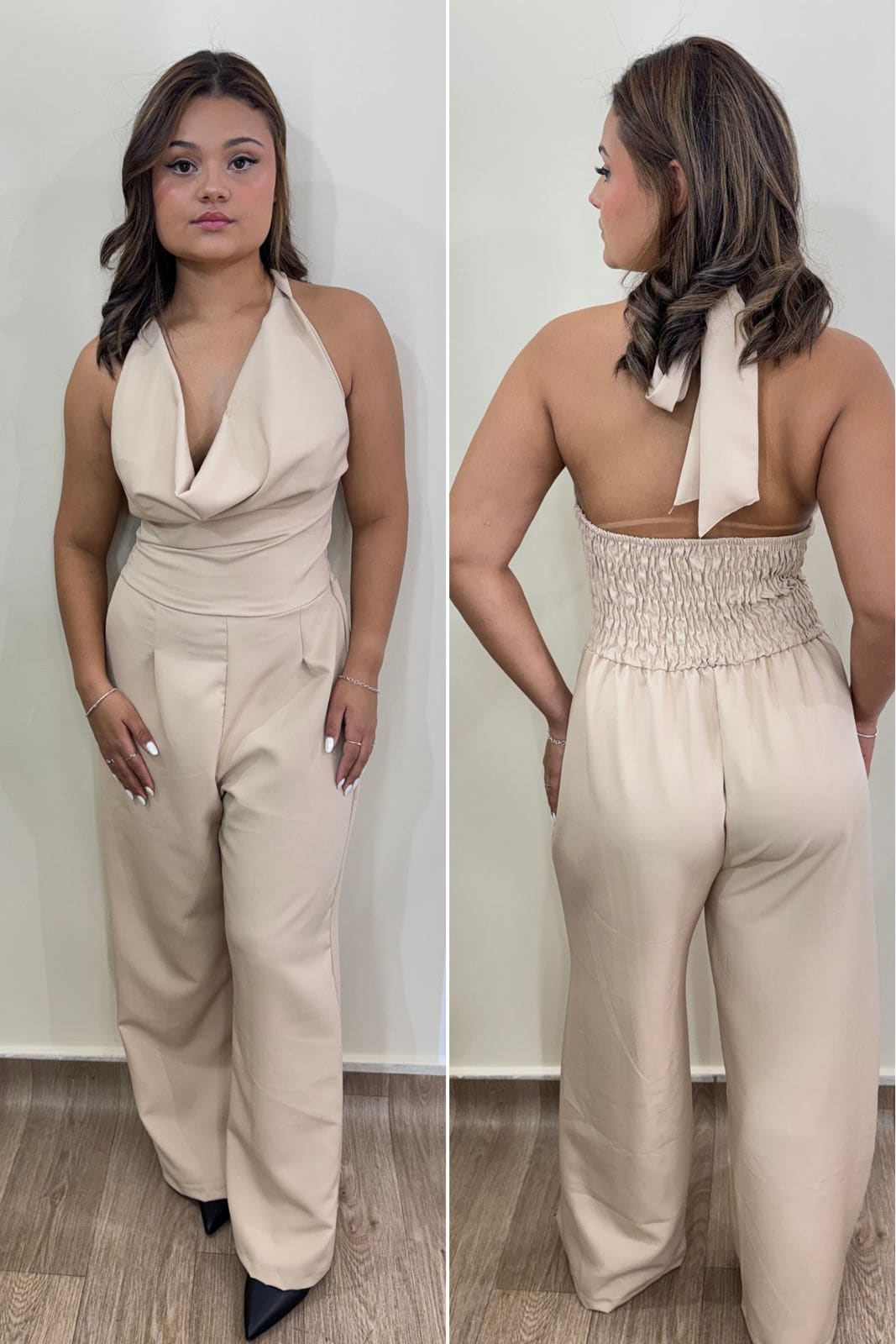 O Macacão Lunna é uma peça poderosa, sofisticada e extremamente feminina. Com decote em V e amarração no pescoço, ele valoriza o colo e traz um visual elegante e sensual na medida certa. O modelo conta com costas abertas e detalhe em lastex, garantindo conforto, ajuste perfeito ao corpo e um caimento impecável.