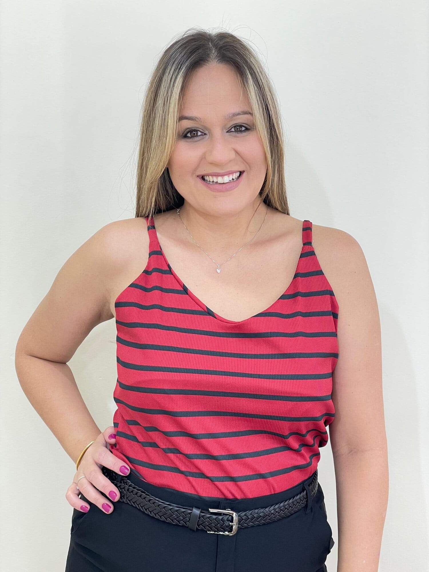 A Regata Flávia é aquela peça básica com um toque de estilo que transforma qualquer look! Fresquinha e super confortável, ela combina com tudo e é perfeita para composições casuais ou mais arrumadinhas.