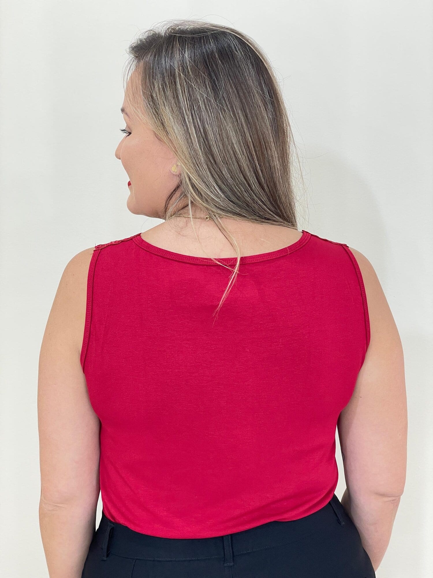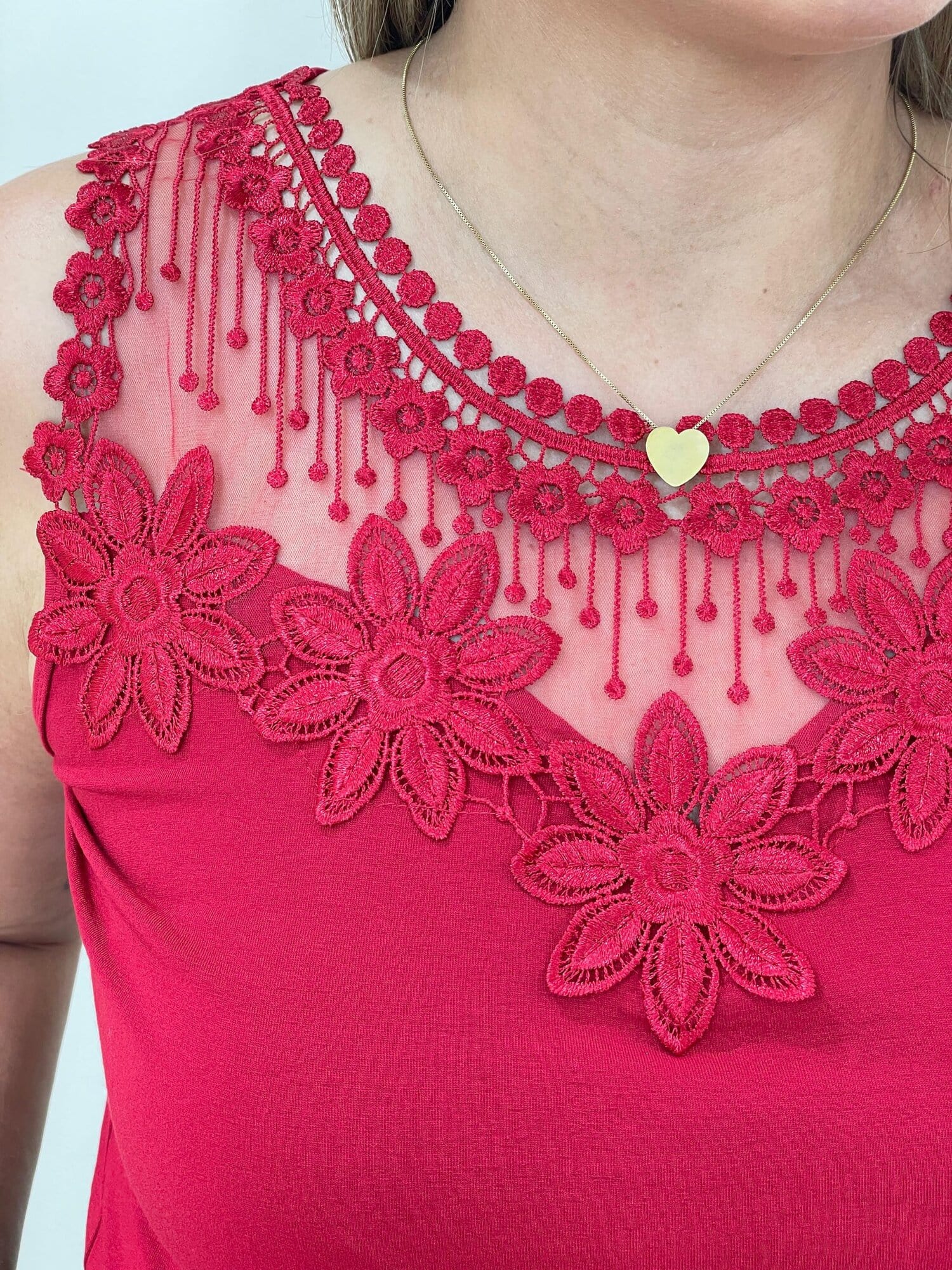 Elegante e confortável, a Regata Karla é a peça ideal para quem ama um visual feminino. Seu design combina o charme da renda com o toque suave do tecido leve, resultando em uma produção delicada e sofisticada!