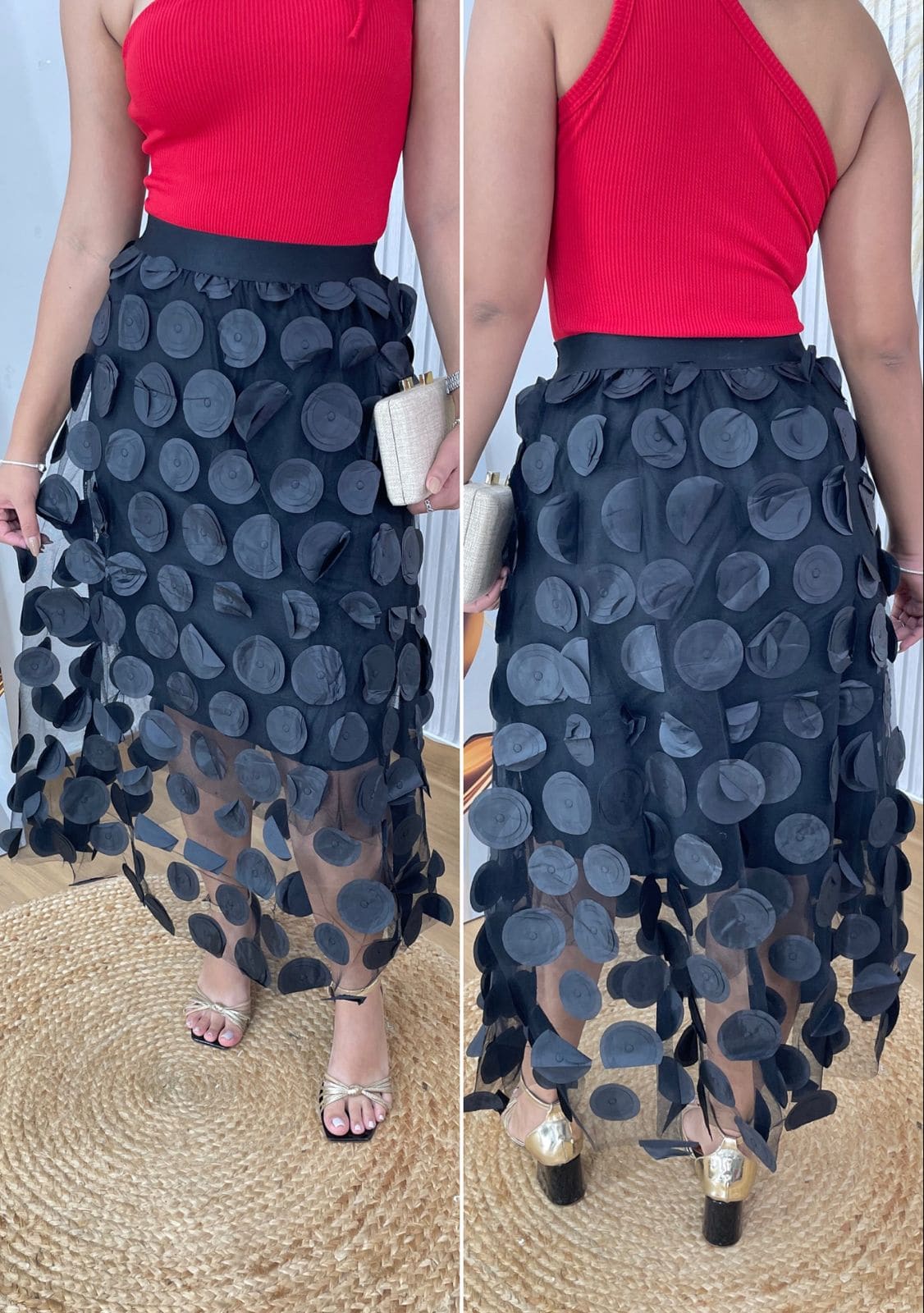 - possui tule com aplicações;