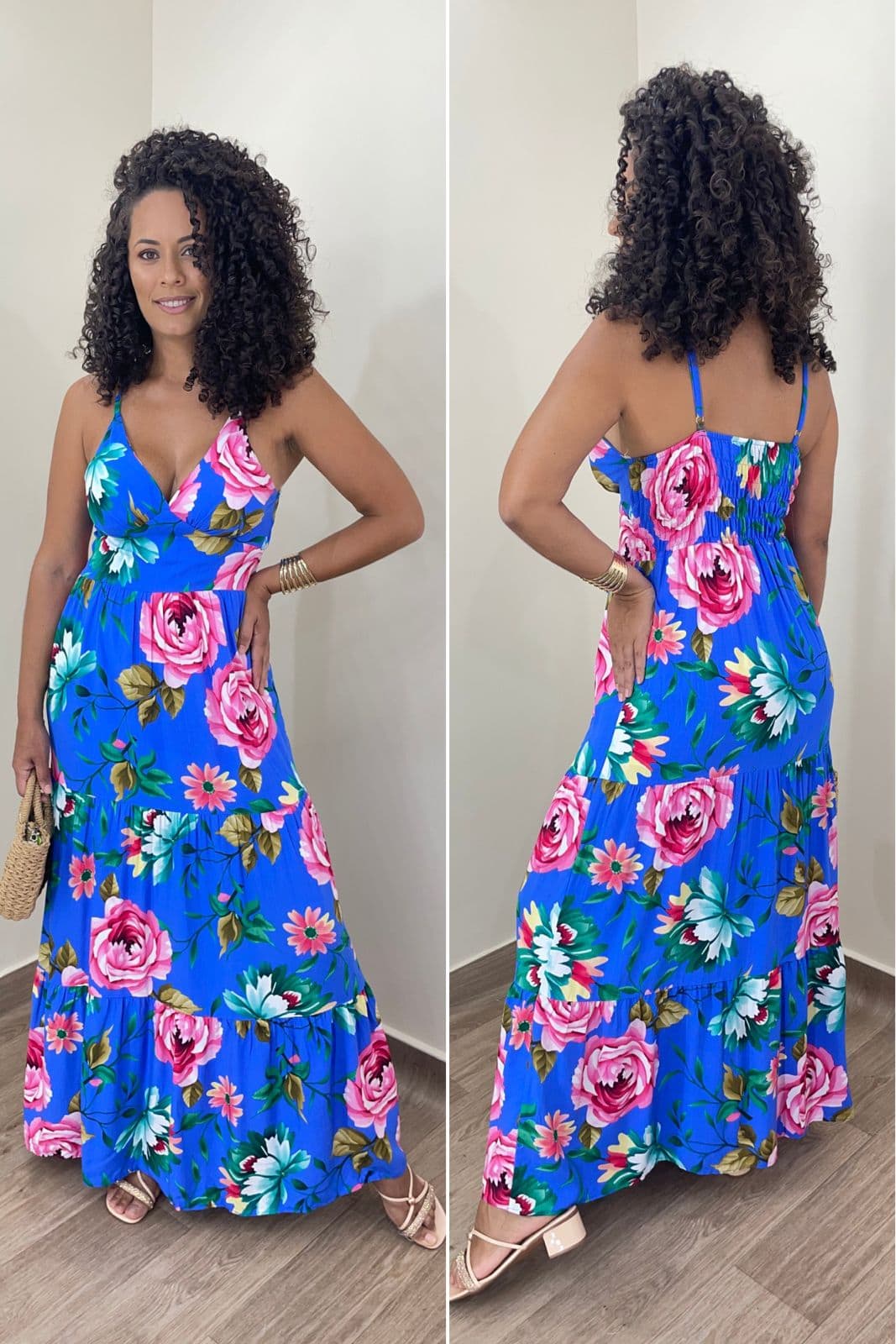 O Vestido Longo Estela é a escolha perfeita para quem ama romantismo e leveza em uma só peça. Com sua estampa floral vibrante e modelagem fluida, ele une estilo e conforto, ideal para dias ensolarados ou ocasiões especiais que pedem um toque de delicadeza.