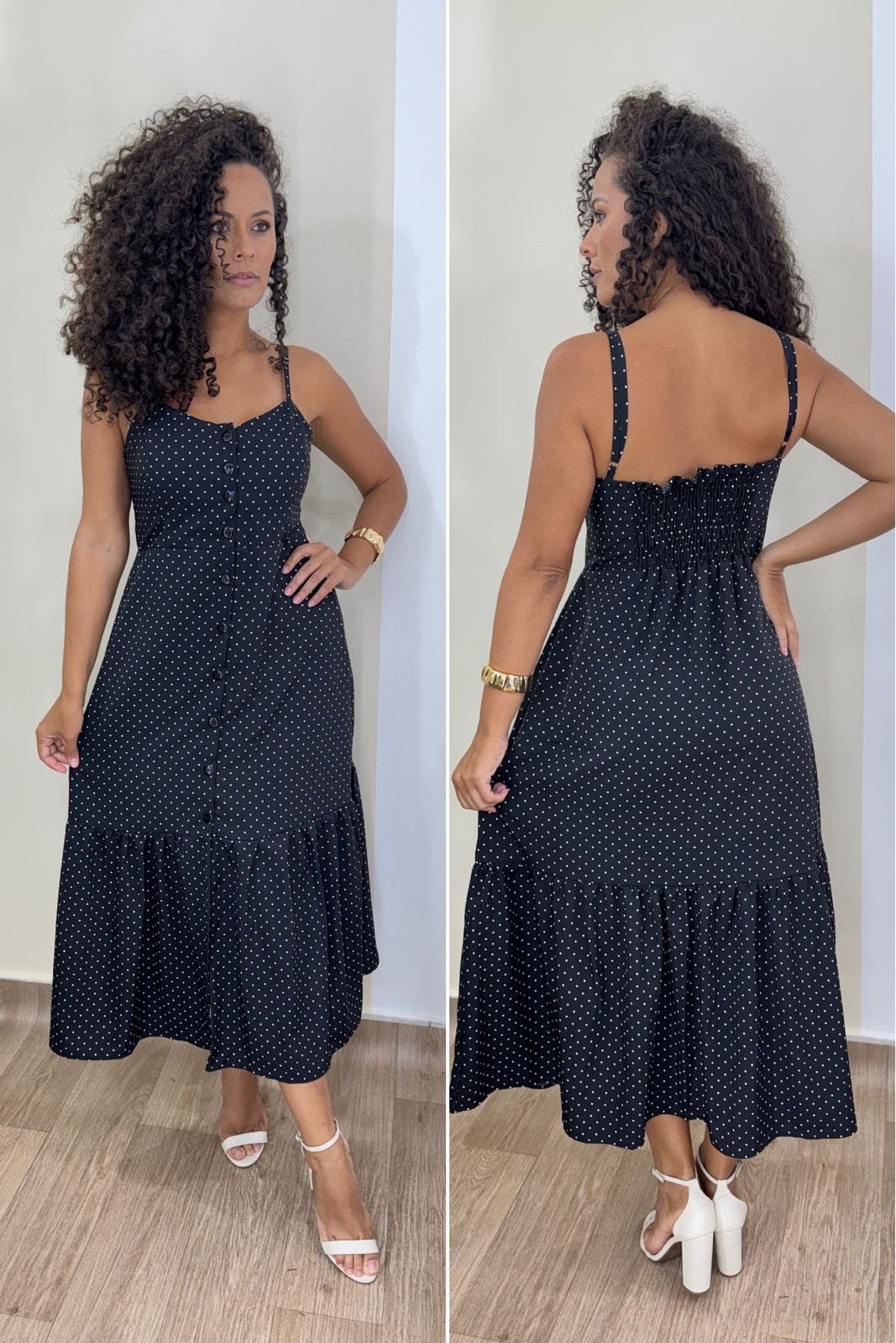 O Vestido Evangeline é a escolha perfeita para quem busca leveza, charme e aquele toque romântico que nunca sai de moda. Com estampa clássica de poá e caimento soltinho, ele valoriza a silhueta e oferece conforto para usar no dia a dia ou em ocasiões especiais.